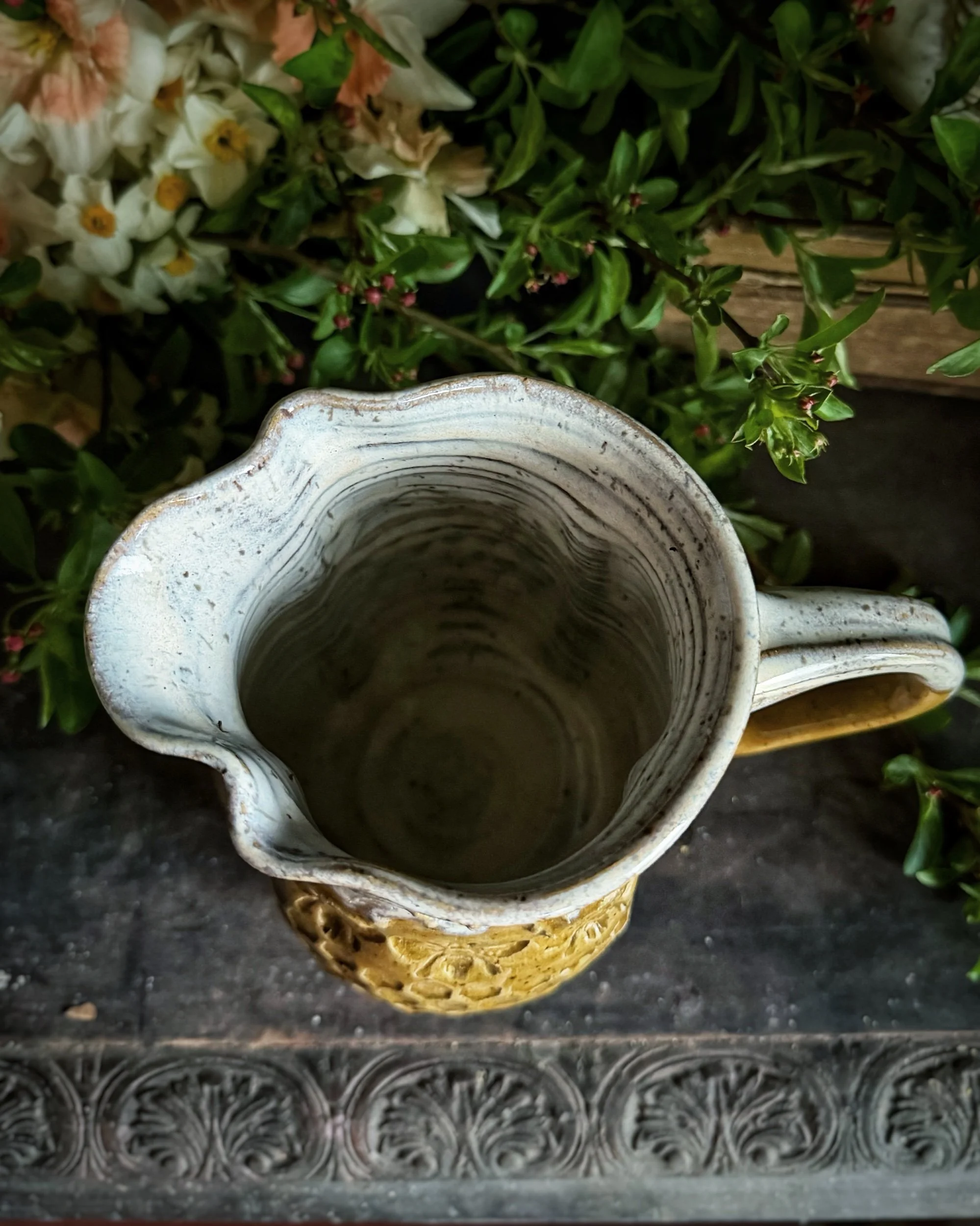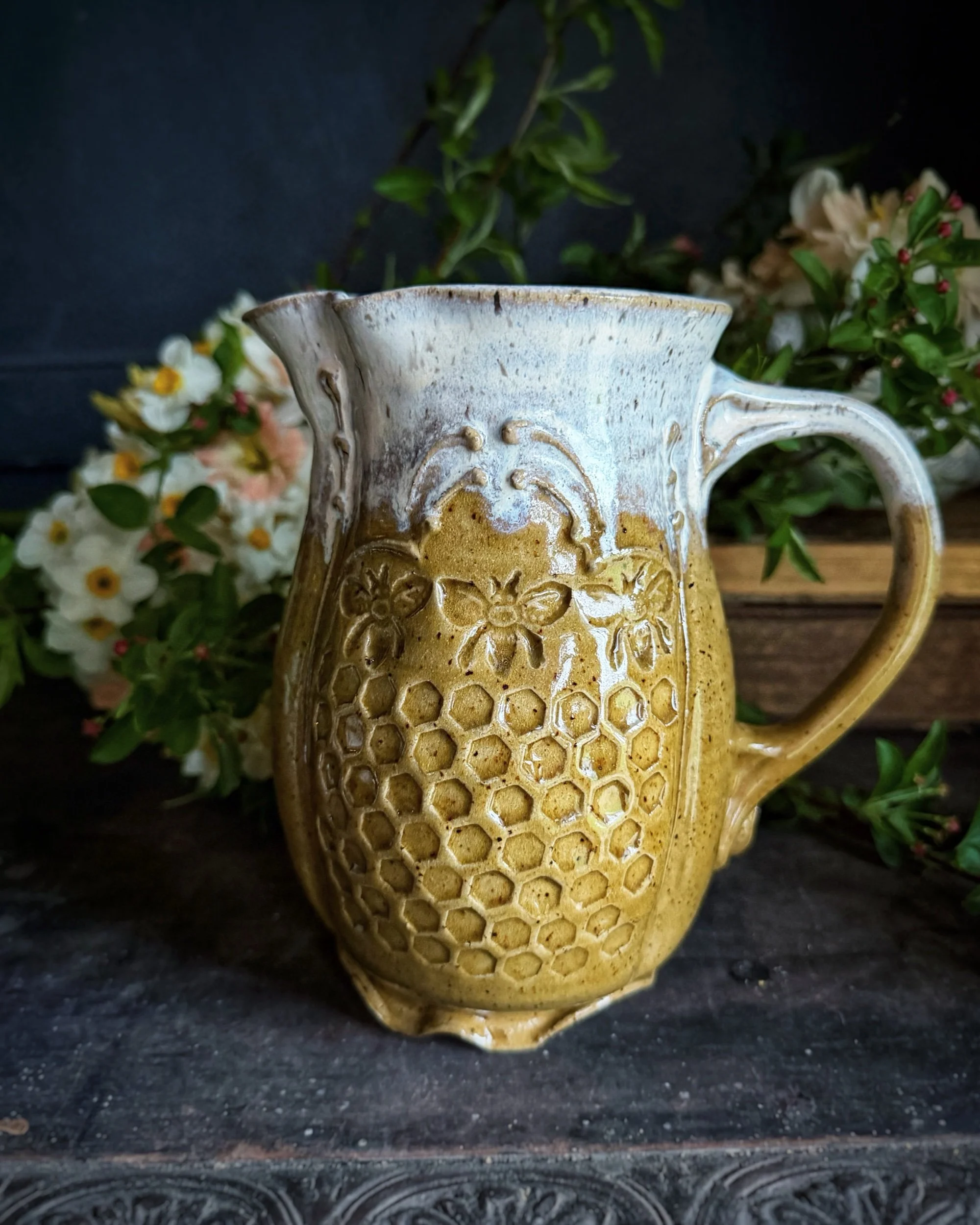 A truly graceful expression of our HoneyCream pattern! This pitcher will hold a generous floral arrangement or a luxurious amount of sweet tea!